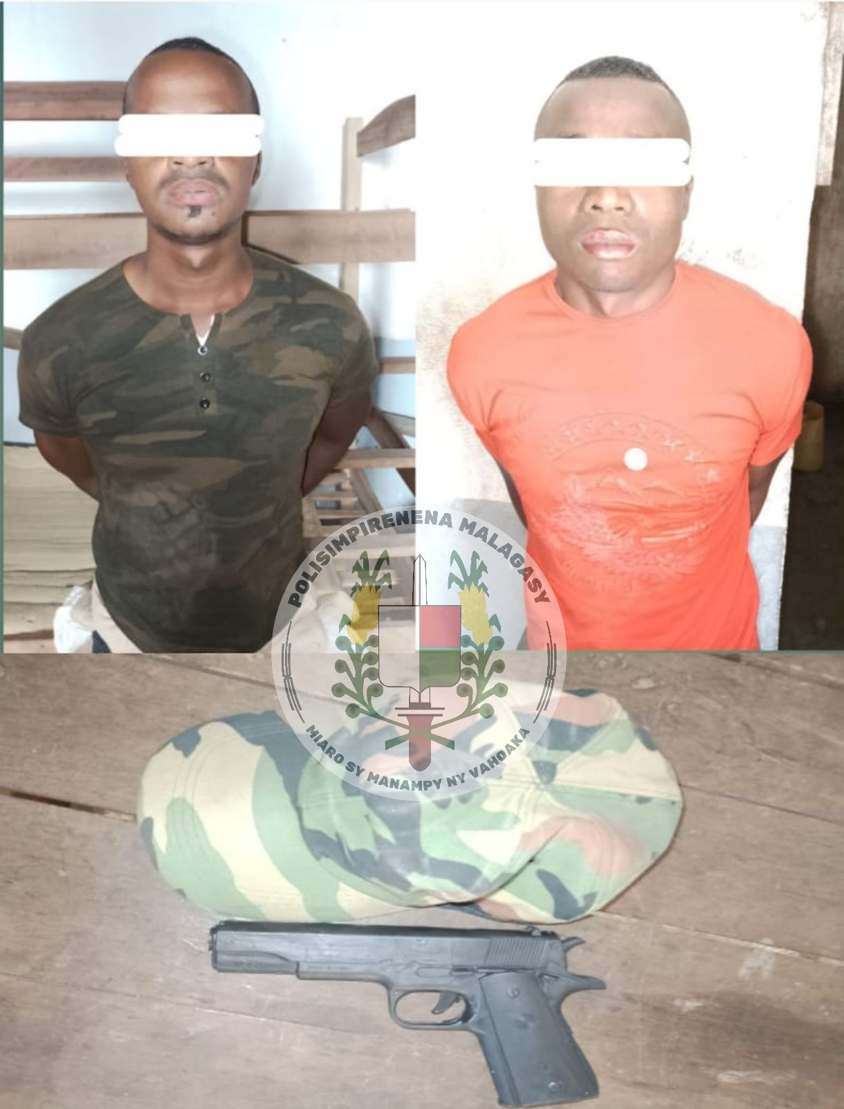 ✅ Naharay vaovao ny Polisimpirenena any an-toerana izay milaza ny fisian’olona roa mitam-piadiana ahiana ho mpikambana ao amina andian-jiolahy avy any Toamasina. Nametraka paikady hahafahana misambotra azy ireo ny Polisy ka rehefa natao ny fisavana dia hita tamin’ny iray amin’izy ireo tokoa ny basy sandoka.