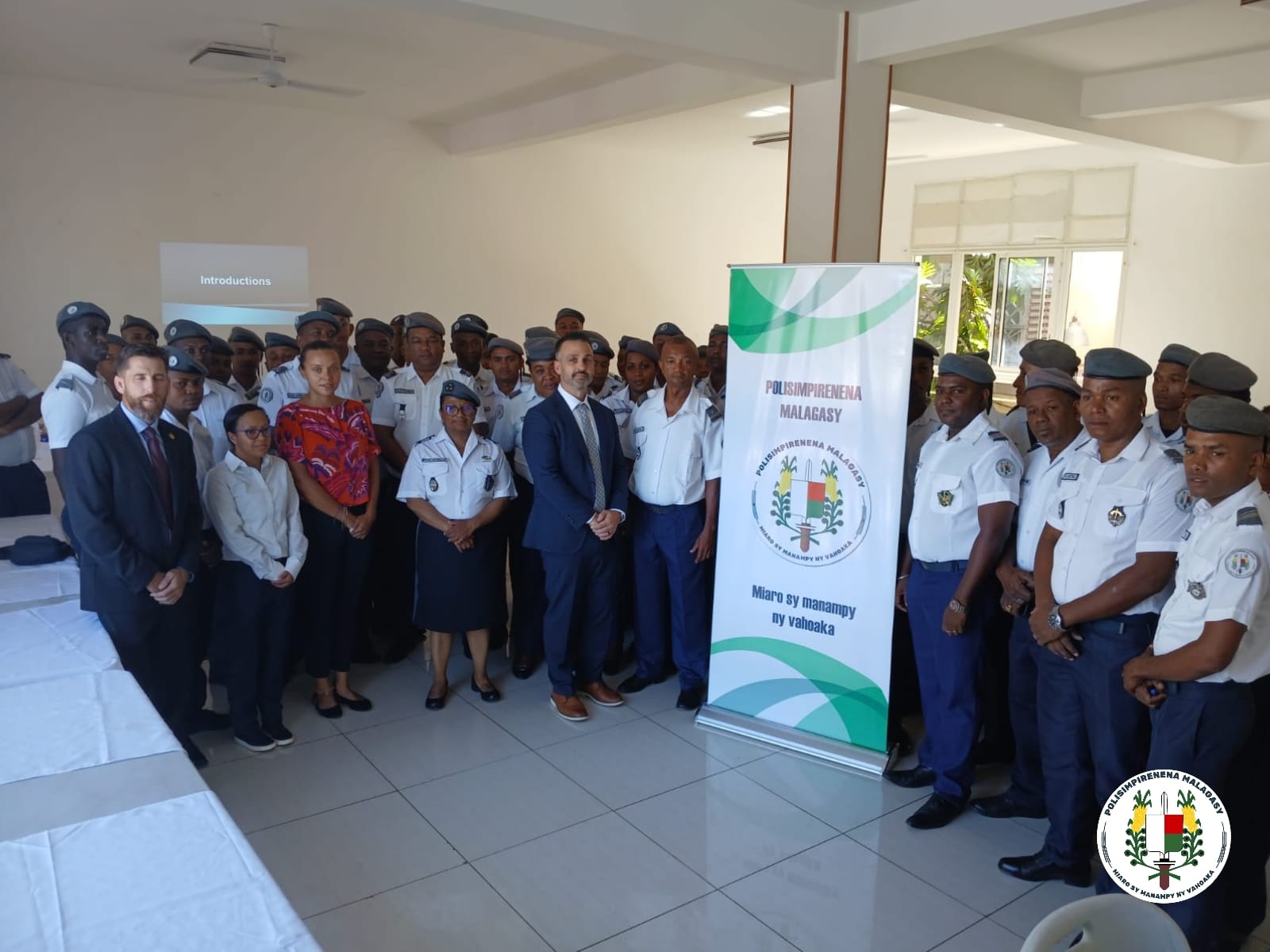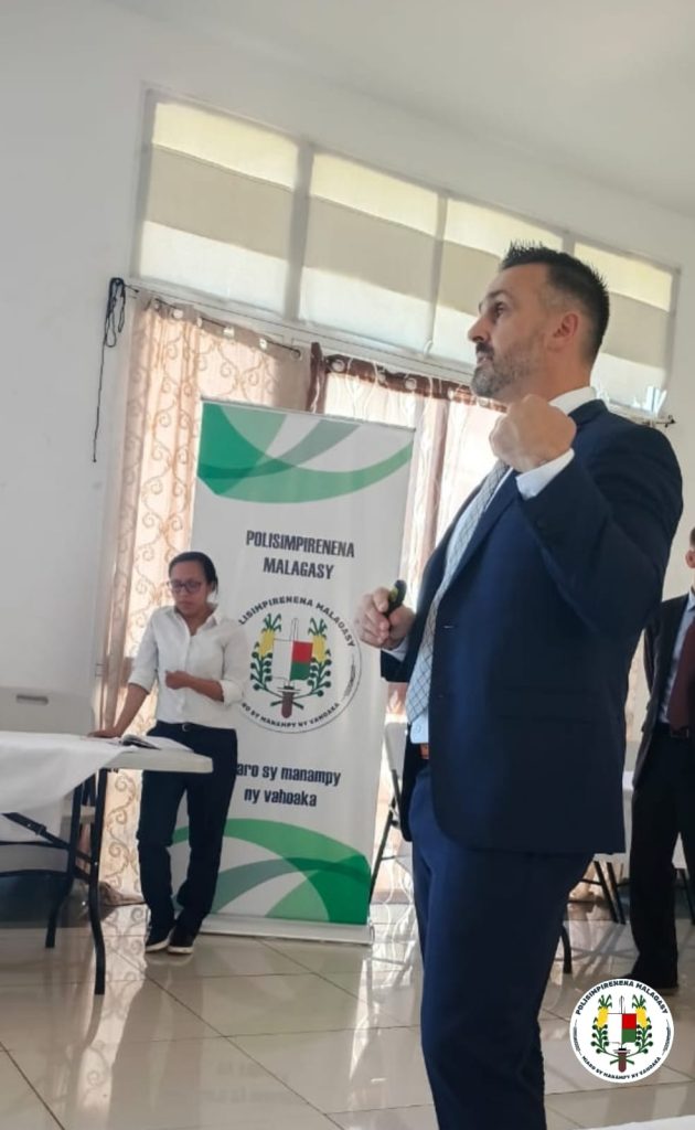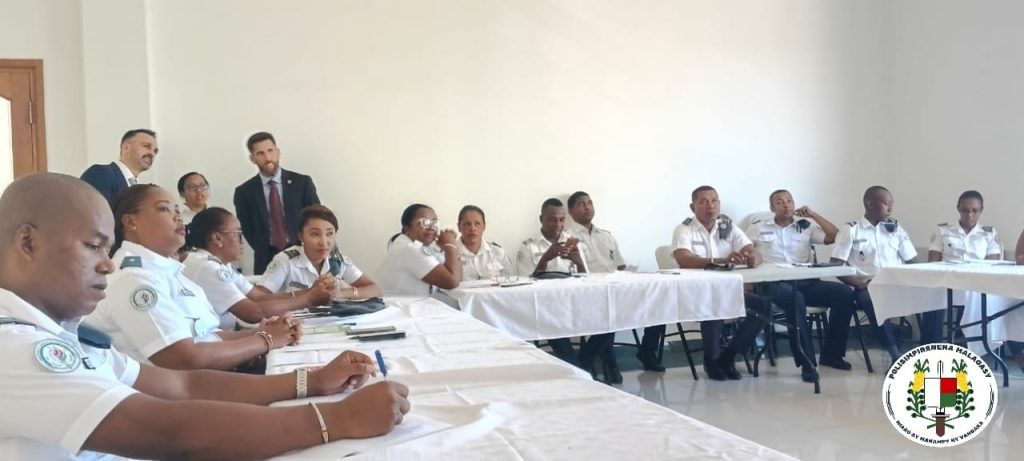 – Tonga nanokatra izany tamin’ny fomba ofisialy ny Tale misahana ny Fikarohana sy ny Fampiofanana mitohy, ny Contrôleur Général de Police RASOAMANANJARA Pierrette, niaraka tamin’ireo mpampiofana iraisam-pirenena.