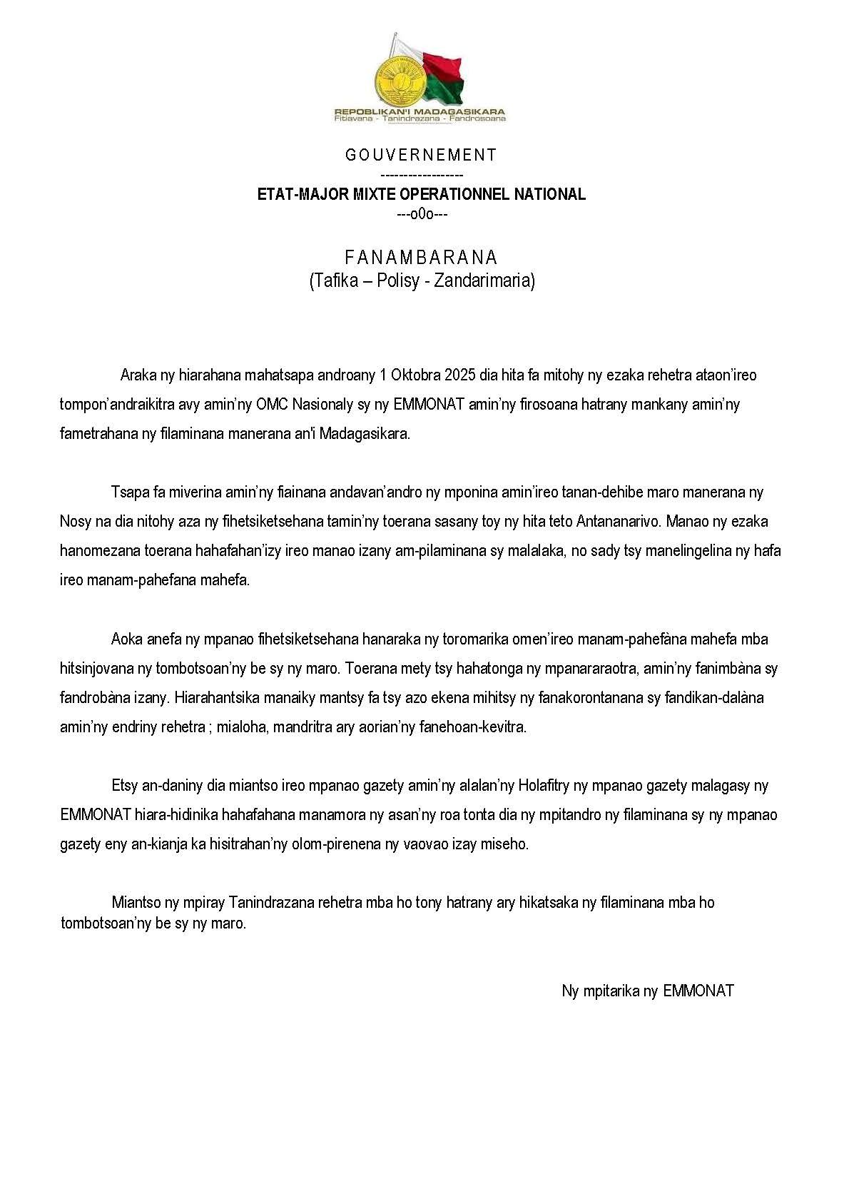 MINISITRY NY FILAMINAM-BAHOAKA : NANOLOTRA FISAORANA NOHO NY FOMBA FIASA MATIHANINA NASEHON’NY POLISIMPIRENENA NANDRITRA IREO FOTOAN-DEHIBE NISEHO TETO AMIN’NY FIRENENA TAMIN’NY VOLANA APRILY, NITONDRA TORO-MARIKA SY NAMPORISIKA IHANY KOA MBA HITONDRA FANATSARANA HATRANY AMIN’NY ASA IZAY MBOLA MIANDRY