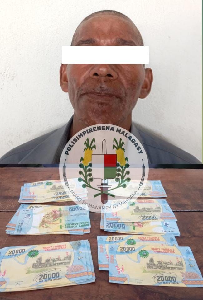 – Nandritra ny fisafoana natao manodidina ny tanàna no nahazoan’ny Polisy vaovao maripototra milaza fa misy olona mitondra sy manaparitaka vola sandoka manodidina ny faritra Avaratr’i Bénédictine Ambositra.