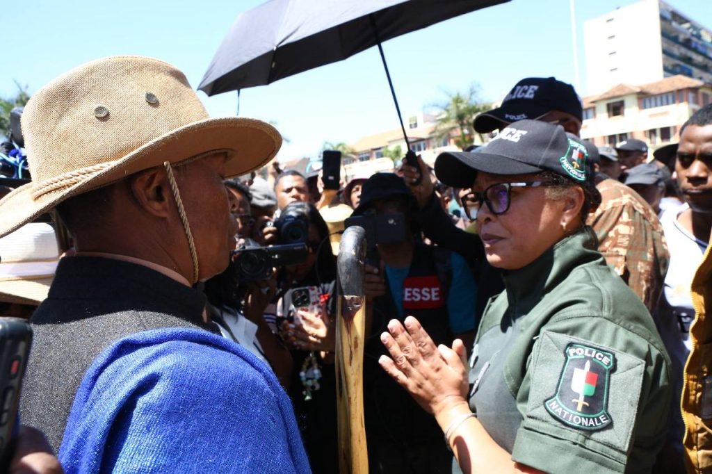 – Nanome toky Ramatoa Minisitra ny Filaminambahoaka, ny Contrôleur Général de Police RANDRIAMBELO Mandimbin’ny Aina, fa eto ny Polisimpirenena miasa ary miaro an’ireo manao ny hetsika androany. Tsy tokony hisalasala hanantona ireo Polisy izay miatrana handamina sy hiaro ireo mpanao hetsika raha misy tranga mampiahiahy, hoy izy.