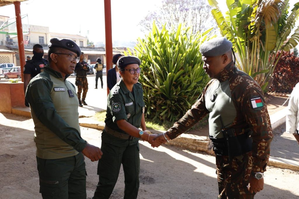 – Nanentana ihany koa izy ny amin’ny maha-zava-dehibe ny fanoloran-tena, ho fanatanterahana an-tsakany sy an-davany ny andraikitra sahanin’ny Polisy manerana ny Nosy mba ho Polisimpirenena miaro sy manampy ny vahoaka tokoa.