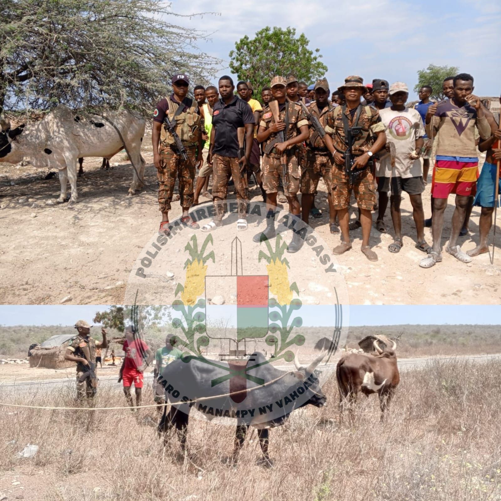 – Tsy niandry ela fa nidina ifotony avy hatrany ny Polisin’ny Hery Vonjy Taitra nanao sakana avy eo Andatabo raha vao naharay antso fitarainana. Tratra tany Ankaronga, 14 km miala an’i Andatabo ireo omby.