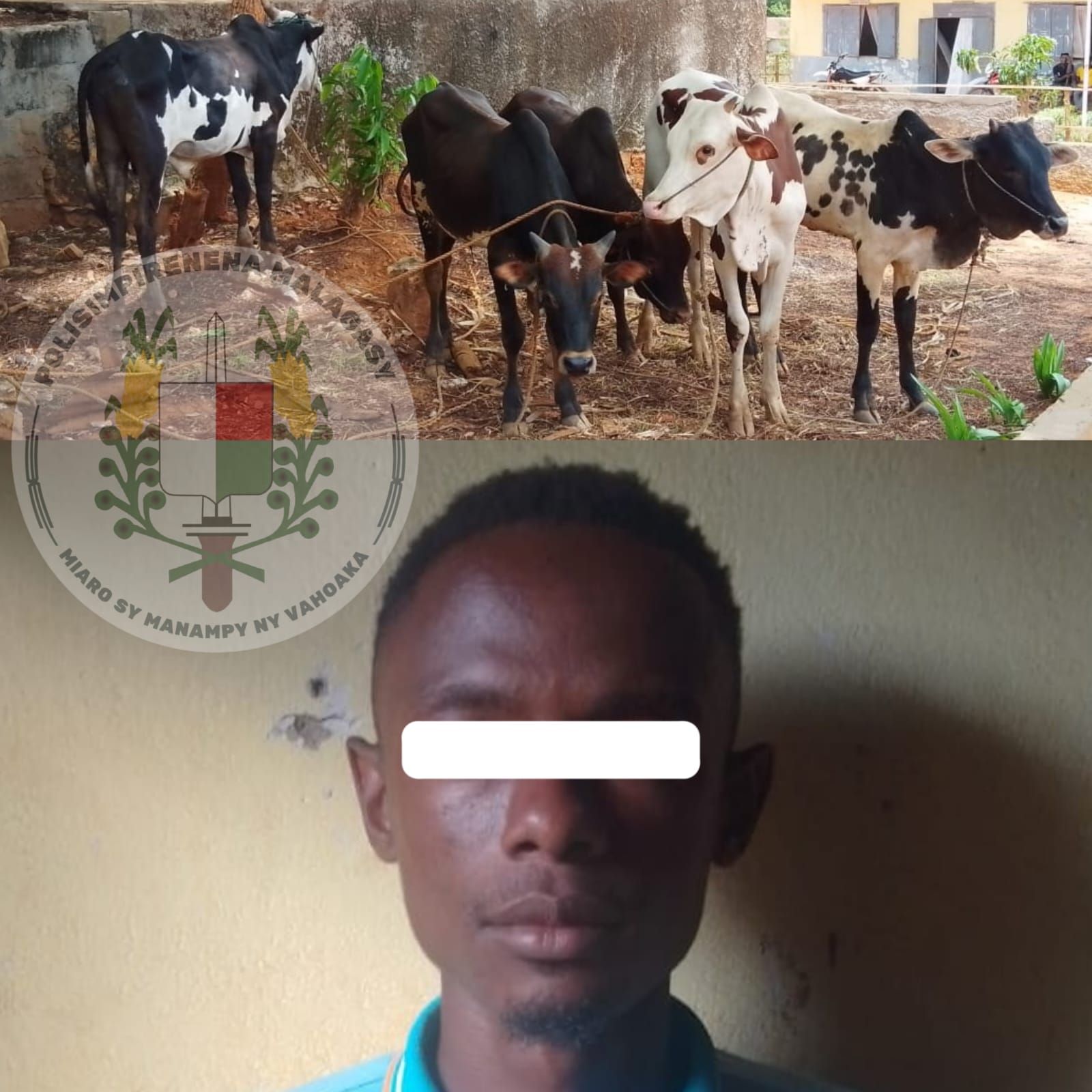 🚔 Nentina tao amin’ny Kaomisarian’ny Besalampy ireo omby miisa 5 tratra sy ilay lehilahy nahatrarana izany mba hanohizana ny famotorana sy fanadihadiana amin’ny antsipirihany.