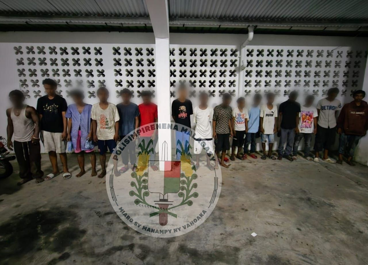 – Nisy ny fiaraha-miasa teo amin’ny Polisin’ny Camp des Manguiers sy ny Kaomisaria Foibe, ka nanao fidirana tampoka tao amin’ilay trano ireo mpitandro filaminana. Voasambotra nandritra izany ny olona miisa 18, ka vehivavy 1 sy lehilahy 17. Tratra tao an-toerana ihany koa harona plastika iray feno rongony.