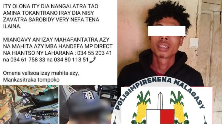 ✅ Ady amin’ny tsy fandriampahalemana sy fipariahan’ny zava-mahadomelina – Ny 22 Novambra 2025 – Lehilahy iray no tratran’ny Polisimpirenena teo am-pangalarana kodiarana sy kojakojana fiara hafa tao Ambohitrarahaba. Rehefa nahatsikaritra olona mampiahiahy nivezivezy tao amin’ny garazy ny tompon-trano dia niantso
