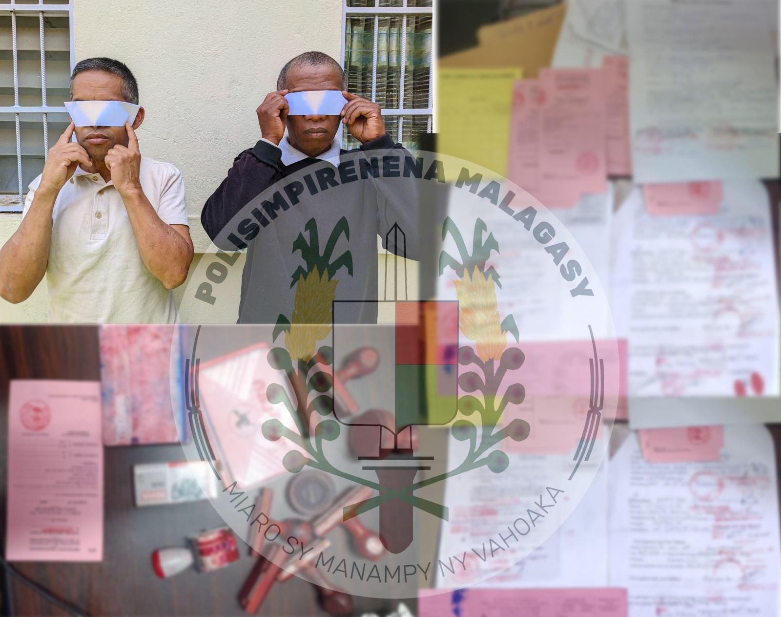 – Voasambotry ny Polisimpirenena misahana ny ady amin’ny heloka an’abaka (Cybercriminalité) ao Anosy, ny 17 novambra 2025, ireto lehilahy roa ireto rehefa nokarohina noho ny fanaovana sy fampiasana taratasy hosoka..