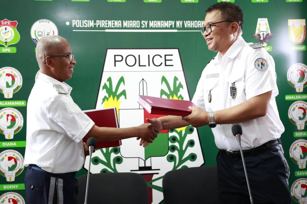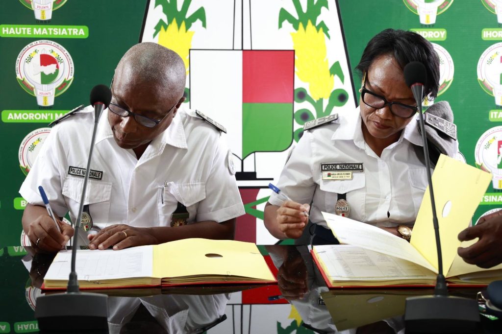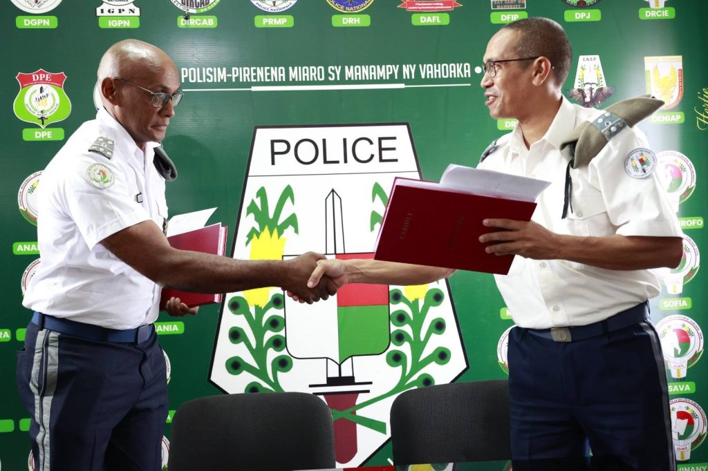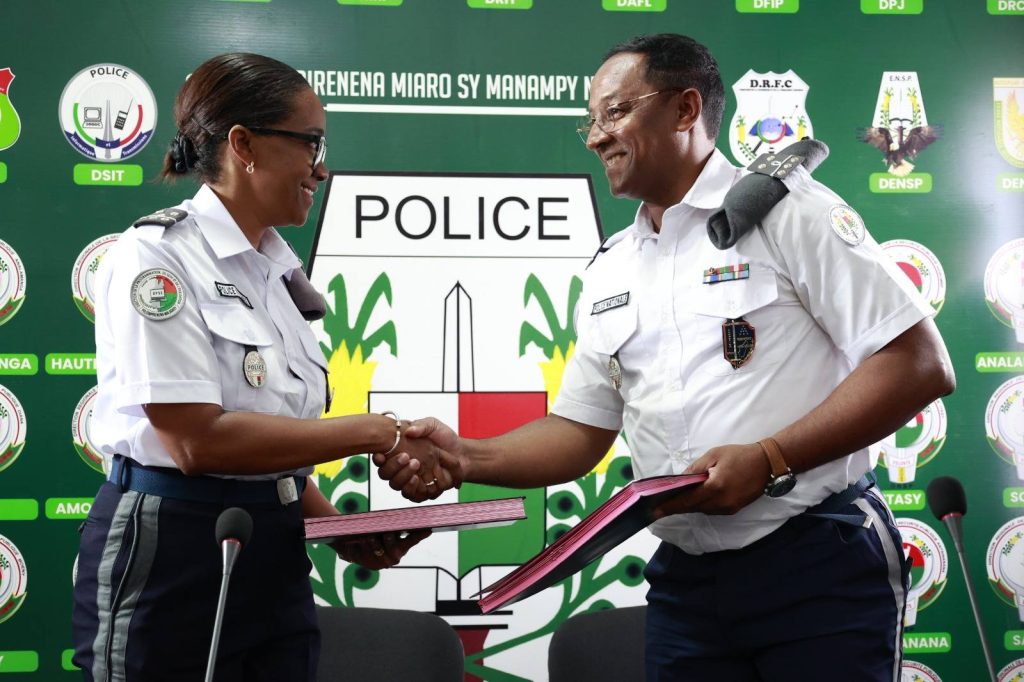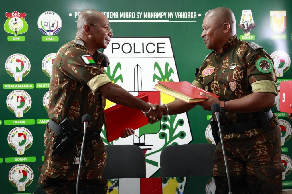 – Ny famindram-pitantanana teo amin’ny Tale vaovao misahana ny Hery vonjy taitran’ny Polisimpirenena (DFIP), ny Commissaire Divisionnaire de Police RAZAFINDRAZAKA Hector sy ny Tale teo aloha ny Commissaire Principal de Police RAKOTONIRINA Jimmy Clark.