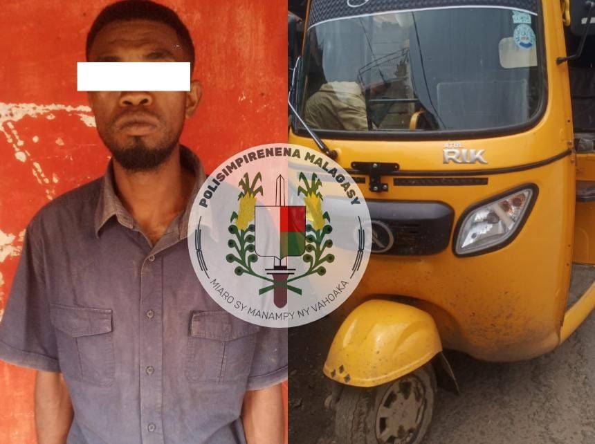 – Teo am-pisokirana ny fanalahidy ity lehilahy ity no tratran’ny tompon’ilay tuc-tuc, ka niantso avy hatrany ny Polisy nanao fisafoana teo amin’ny manodidina mba hanao ny fisamborana azy ilay tompony.