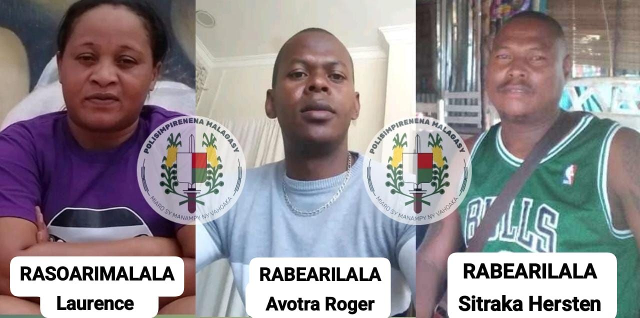 – Ireto olona ireto dia manan-draharaha eny anivon’ny Polisimpirenena ; koa hiangaviana izay mahafantatra azy mba hanatona ny Polisy akaiky azy na hanatona avy hatrany ny Kaomisarian’ny Distrikan’ny Moromanaga na hiantso ireto laharana finday ireto :