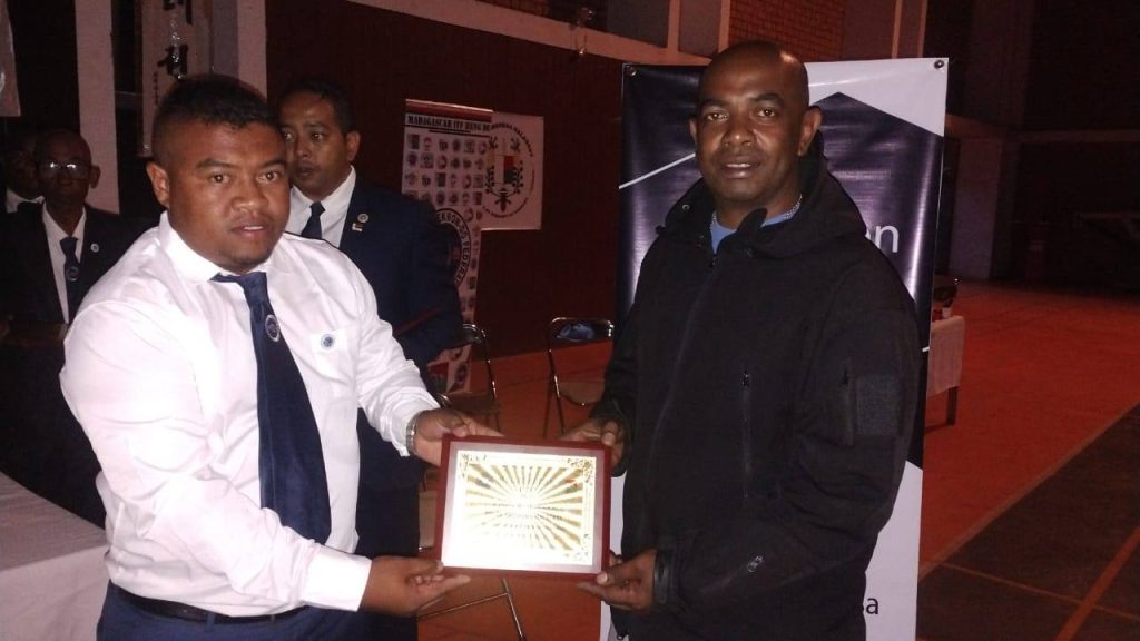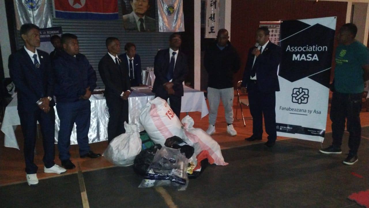 – Anisan’ny nanolotra izany, nisolo tena ny fikambanana ITF Tarihin’ny Profesora Ri Yong Son sy ireo mpiara-miasa aminy ny mpampiofana, Andriamatoa RAKOTONDRAMANANA Yves Francky .