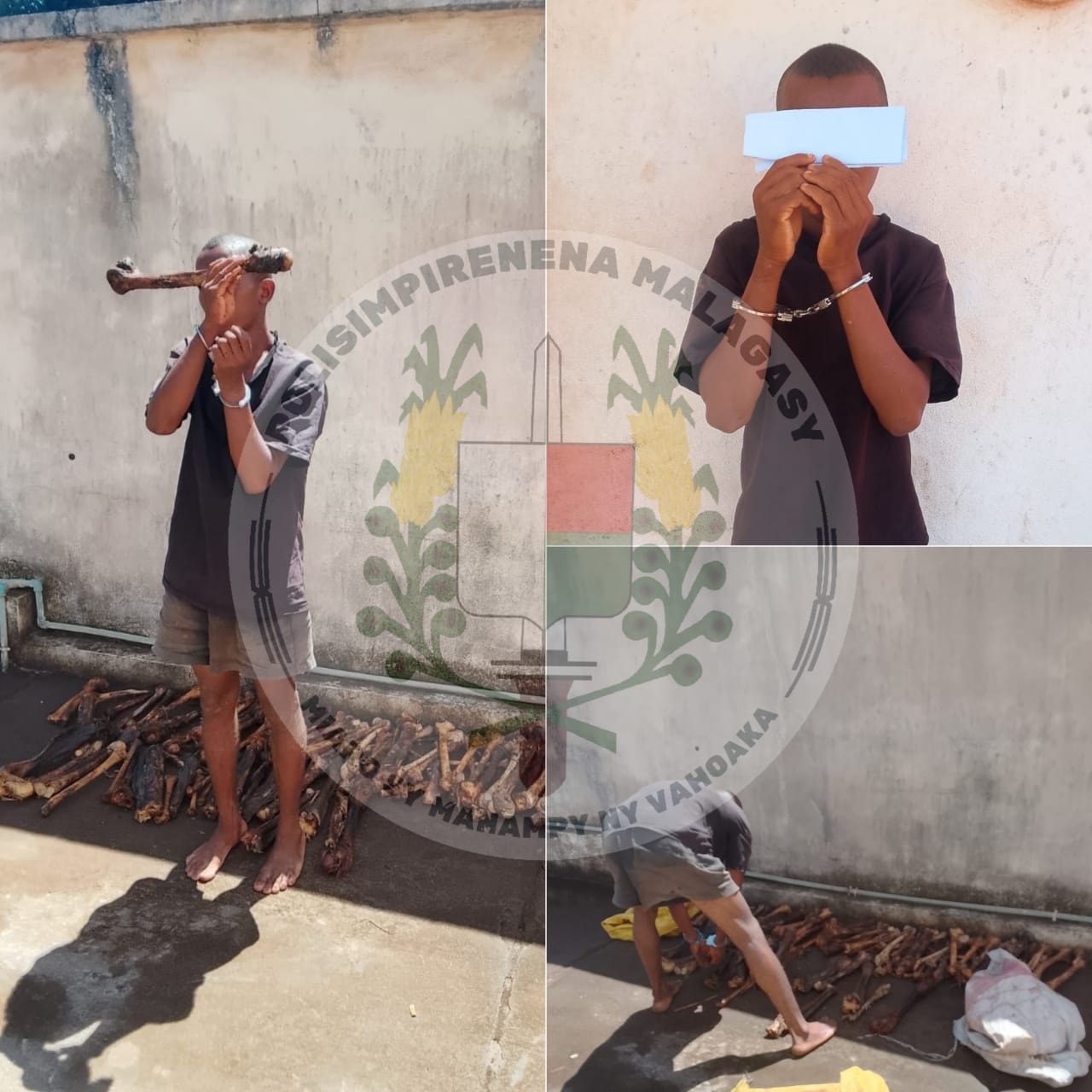 – Lehilahy iray no voasambotry ny Polisy miasa eo anivon’ny CRFIP Atsimo Atsinanana ny Talata faha 13 Janoary 2026 noho ny raharaha halatra sy fikasana hivarotra taolam-paty tao amin’ny Kaominina Ambanivohitra Anosivelo, Distrikan’i Farafangana.