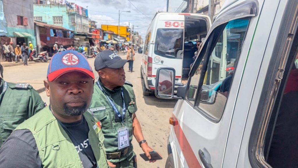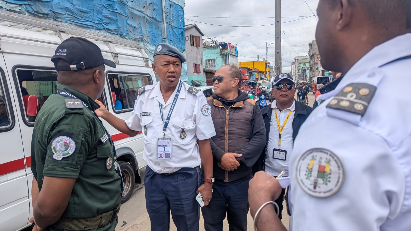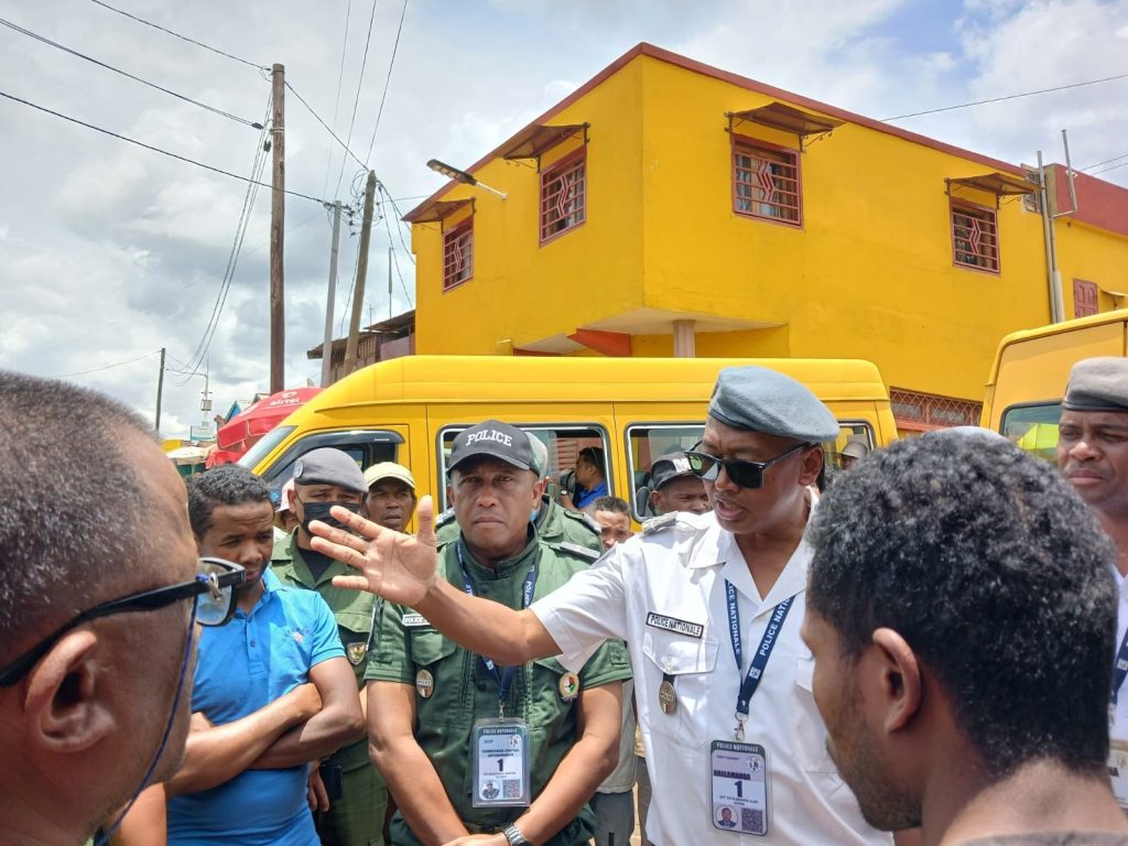 -Nihaona mivantana teny an-kianja ka niresaka tamin’ireo Polisimpirenena miasa eny an-dalana sy ireo mpamily taxibe 194 sy zotra D teny 67 ha Vatobe ary teny Andranomena ny Talem-paritry Filaminambahoaka Analamanga, ny Commissaire Prinicipal de Police RAFALIMANANA Alain Adonis, niaraka tamin’ny Lehiben’ny Kaomisaria Foibe Tsaralalàna, sy ireo tompon’andraikitra ny Polisimpirenena amin’ireo faritra ireo.
