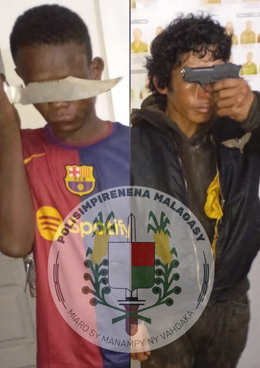 – Ny alin’ny Talata 17 Martsa 2026 tokony ho tamin’ny misasakalina mahery tokoa no nifanena tamin’ny Polisy sy ireo Vaomieran’ny Fandriam-pahalemana nanao fisafoana izy roalahy ireto ka rehefa nosavaina dia tratra tany aminy ireo fitaovam-piadiana ireo.