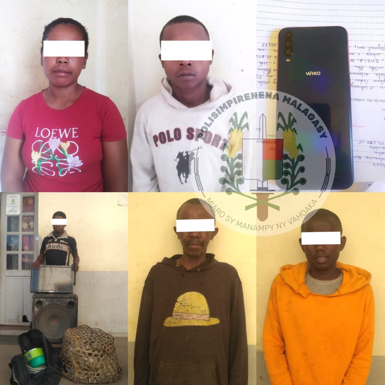 – Ny 19 Martsa 2026 tao Igaga taorian’ny fitoriana voaray momba ny vaky trano; nanao ny fanadihadiana ny Polisimpirenena ka voasambotra ny 24 martsa tao an-toerana ihany ny olona roa ka vehivavy ny iray izay tomponantoka tamin’izany. Naverina tamin’ny tompony ny finday « marque Wiko » halatra izay tratra tany amin’izy ireo rehefa vita fanamarinana.
