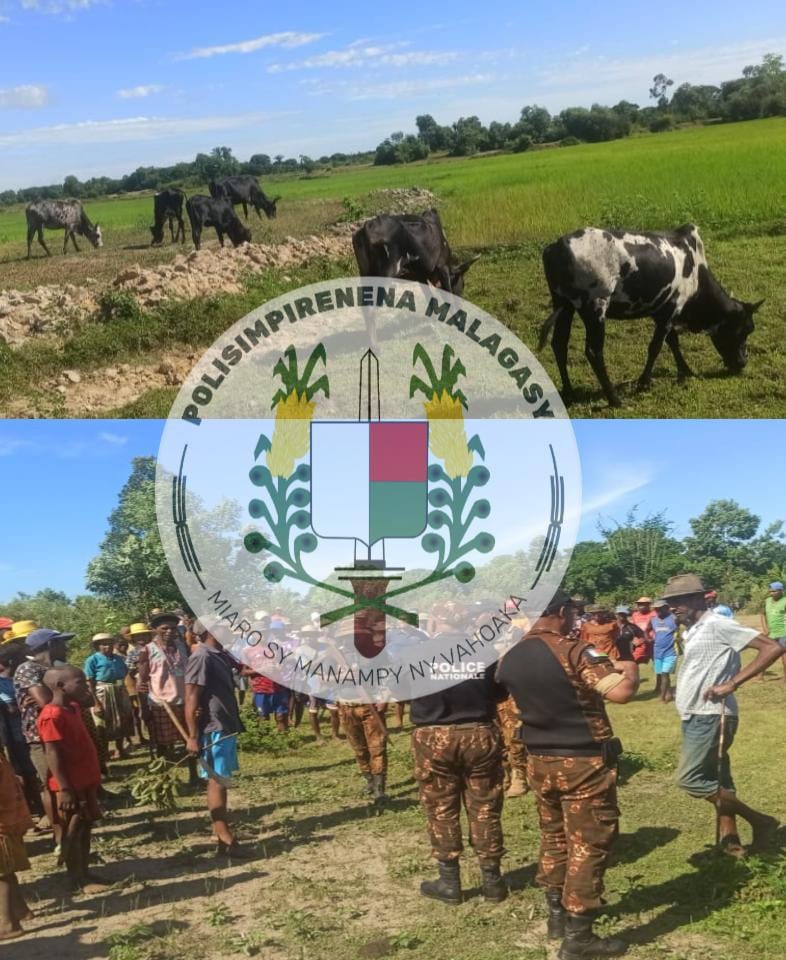 – Raha vantany vao tsikaritr’ireo dahalo fa misy mpitandro filaminana sy fokonolona maro manaraka azy ireo dia navelany ireo omby miisa 06 ary nandositra izy ireo.
