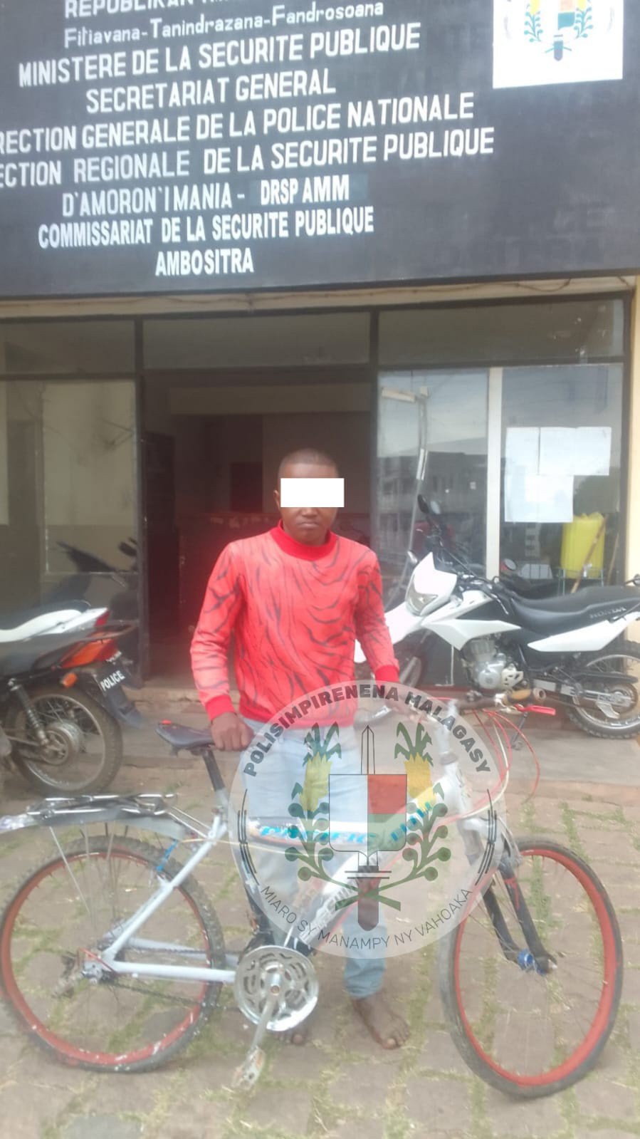 Nanao ny fikarohana sy ny fanadihadiana rehetra ny Polisimpirenena raha vao nahare avy amin’ilay vehivavy tompon-trano ka voasambotra ilay olon-dratsy tompon’antoka. Mbola tratra tany aminy ny bisikileta iray izay anisan’ny very tamin’io fotoana io.