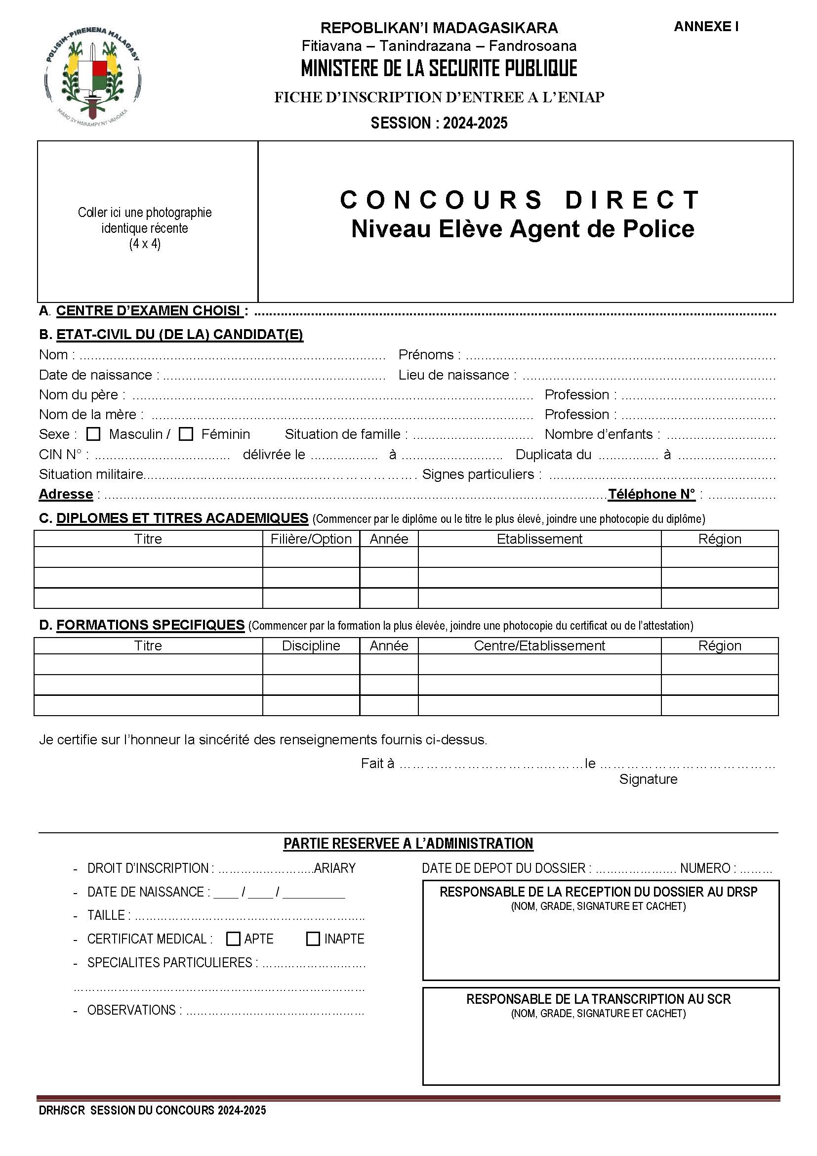 FILAZANA HO AN’NY KANDIDA TAOM-PIFANINANA 2024-2025