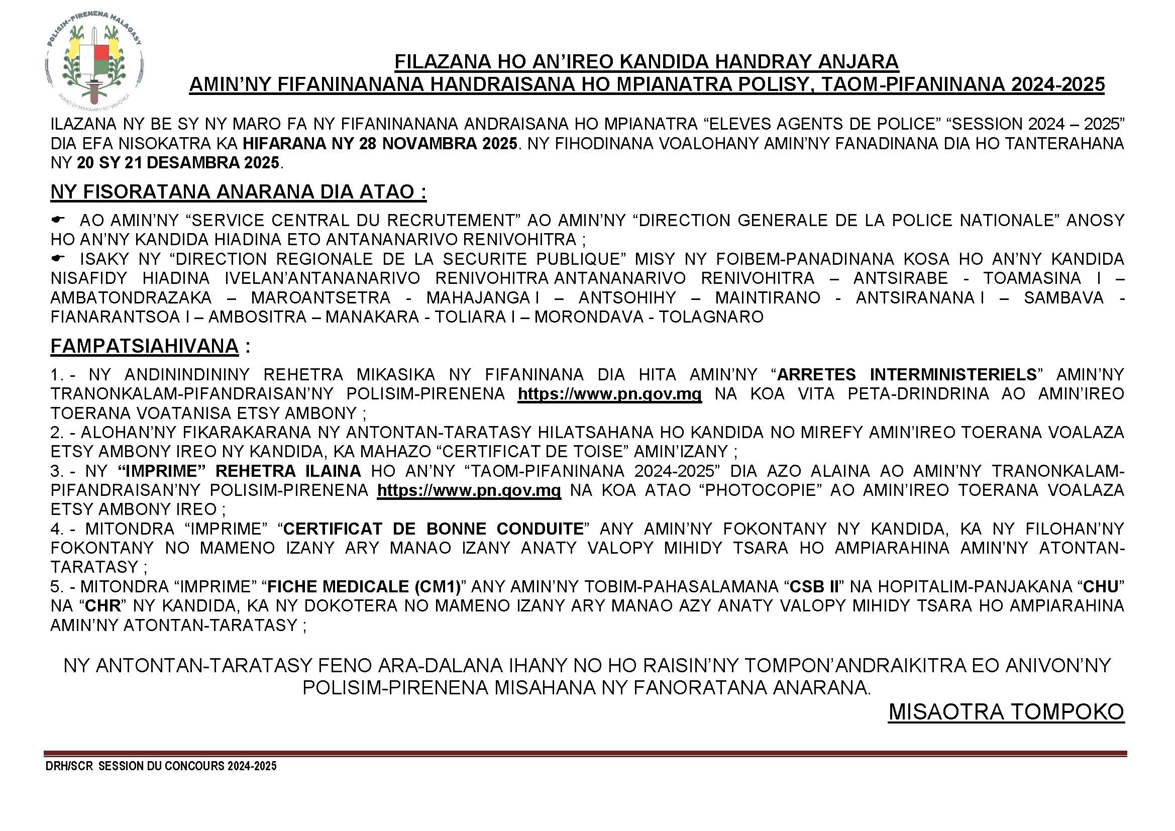 FILAZANA HO AN’NY KANDIDA TAOM-PIFANINANA 2024-2025
